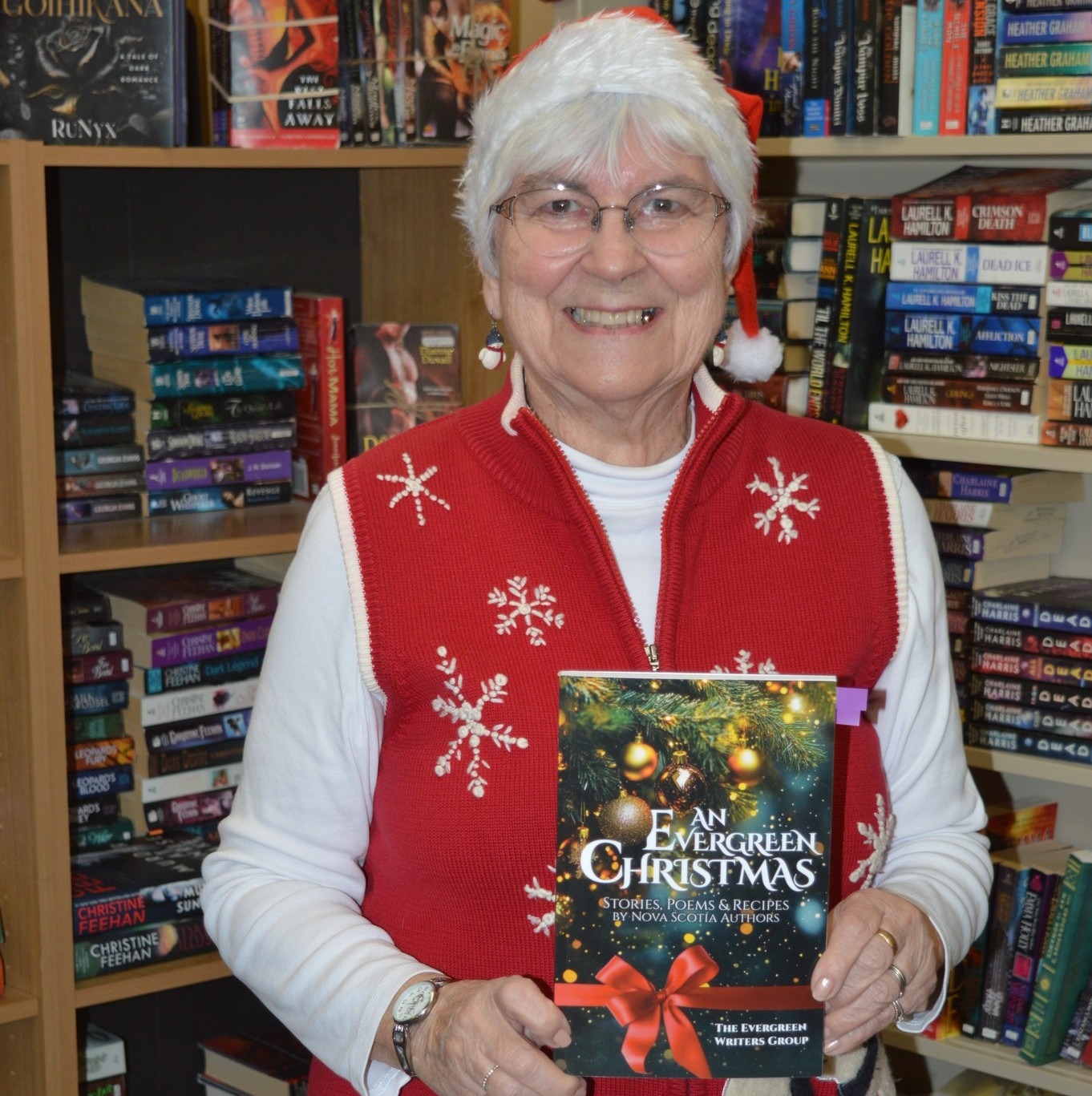 In the summer of 2014, they completed a two-year project with the publication of Out of the Mist, an anthology of twenty-two Atlantic Canadian ghost stories written by eleven of their members. Their second anthology, Off Highway: Journeys of Nova Scotia Writers, was published in 2017, and their third, Water’s Edge: Prose and Poetry Celebrating Nova Scotia’s Aquatic Heritage, in 2020. Their fourth, launched this month, is An Evergreen Christmas: Stories, Poems & Recipes by Nova Scotia Authors.