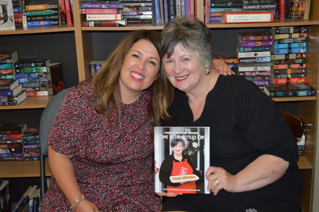 On August 20th, we welcomed back Mary Janet MacDonald with her third and final book in her trilogy. In Tunes and Wooden Spoons: Come In, the Kettle’s On!, Mary Janet, and her daughter, Margie, take us on an incredible culinary journey into several Maritime kitchens where they find good company and tasty food. Grandmothers and grandfathers from throughout Nova Scotia, New Brunswick, and Prince Edward Island invite us into their kitchens where they share their secrets to healthy eating and strong families. It features 39 grandmothers and 2 grandfathers. One of the grandfathers even came to our event.