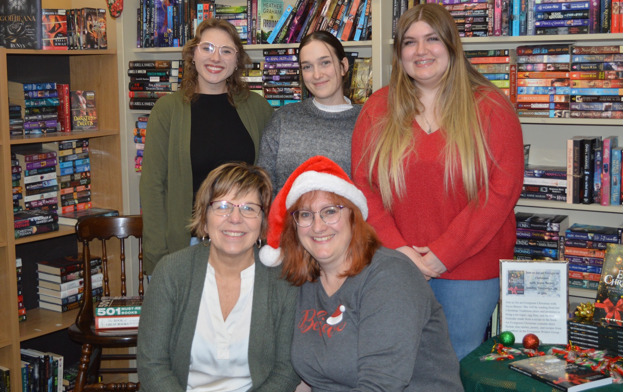 We had many more exciting events this year, including: An Event to Die For” with special guests donalee Moulton, Vernon Oickle, and Retired RCMP Officer Gary Grant. Together with 20 fans, a couple of pots of NovelTea’s Vlad’s First Bite Berry Bliss Herbal Tea, and a psychopath quiz, made this event not only fun but quite a success. Donna Jones Alward’s Ship of Dreams Release Day Party, A Meet & Greet pop-up with Lana Shupe, the author of the picture books: The Lonely Little Light House, and The Book Witch, The Wee White Dog, and the Little Free Library. Romance Reimagined, a Bookstore Romance Day event with Cathryn Fox, Nicole Northwood, and surprise guest Deanna Foster. We hosted Lori Weber‘s We Walked Him To The Door book launch. We had Meet & Greets with the Pottersfield Prize Winners for Creative Nonfiction for 2024: Co-authors James MacDuff and Mirriam Mweemba for The Illogical Adventure, and Matthew R. Anderson for Someone Else’s Saint. Also, Janice Landry, Every Little Thing. For Halloween, we had an In the Shadows Tea with authors Deanna Foster and B.R. Myers drinking NovelTea’s Bram Stoker’s Vlad’s First Bite Berry Bliss Herbal tea. Deanna also did short “Fear” 4-card tarot card readings at the end of the event. We had A Halifax Legal Thriller Showcase with Pamela Callow, the bestselling author of the Kate Lange thriller series. We also had several holiday events, including An Evergreen Christmas with Joyce Baxter, a Holiday Book Event with Denise Flint and Deana Foster, and to finish the year, we celebrated Jane Austen’s 250th Birthday with Michelle Helliwell, Nicole Northwood, and Kelly Boyce.