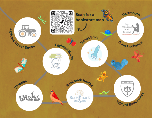 We are also part of the second annual indie bookstore crawl with 6 other Indie bookstores in HRM. See the postcard at the top of this page for more information.
