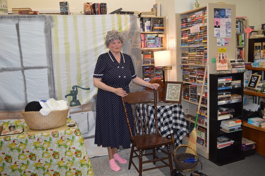 On September 18th, Cindy, appearing as Catherine Gallagher, presented her one-of-a-kind show to a full house in the cozy event space at Dartmouth Book Exchange. Set in 1945, in a lighthouse at the edge of a cliff at Chebucto Head, Catherine appears to us in costume, happily dancing and singing; I’m going to get married. With the use of props and a wonderful set design, Catherine tells us her life story.