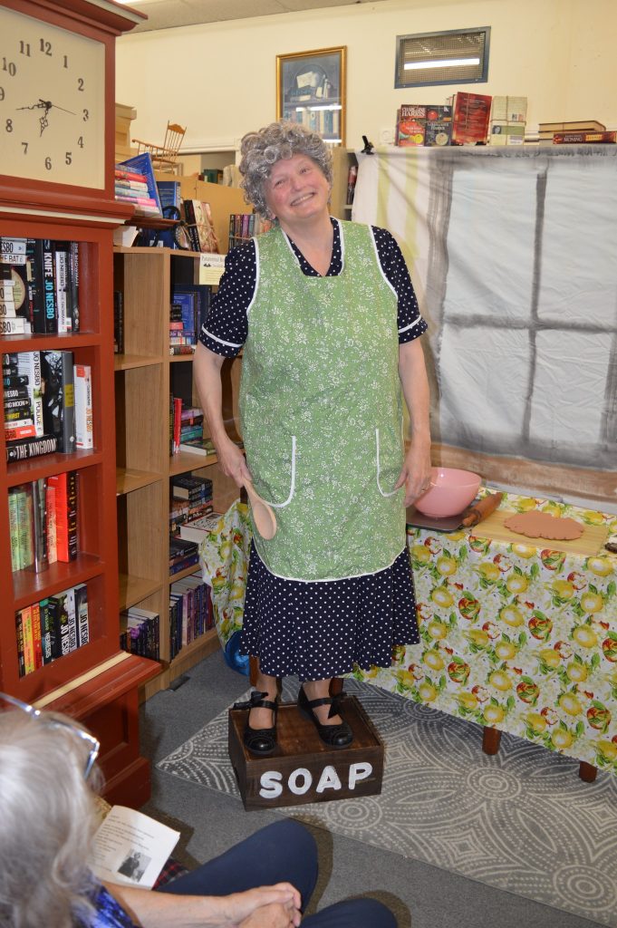 “Wearing a vintage apron and using props to further submerge us into the time of Catherine. This show is an example of life and times long past and soon to be forgotten if not recorded in such a way that future generations can see and experience it.”- Sue Slade